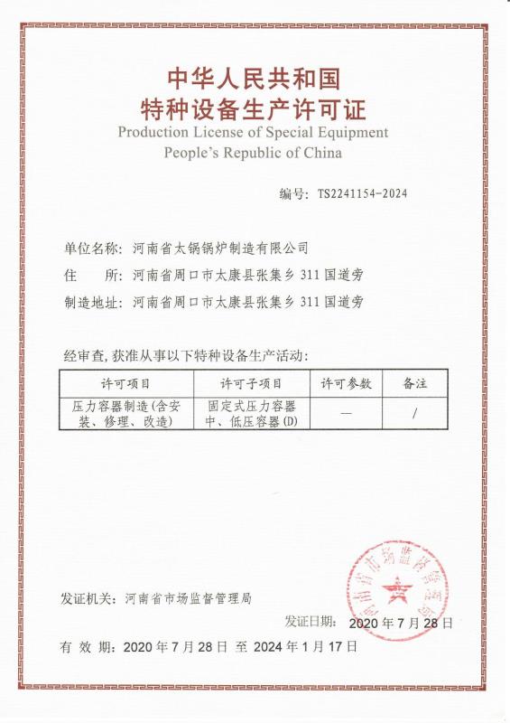河南省太鍋鍋爐制造有限公司(原河南省太康鍋爐廠始建于1976年)始建于70年代初,經40多年的艱辛探索,靠科技興業(yè),走科學管理之路,現已發(fā)展成為承接制造、安裝、設計大、中型供熱系統(tǒng),生產:SZS燃油燃氣蒸汽鍋爐、燃煤蒸汽鍋爐、燃油鍋爐、燃氣鍋爐、電加熱鍋爐、生物質鍋爐、茶水鍋爐、有機熱載體鍋爐、熱風鍋爐,蒸壓釜、燃油蒸汽鍋爐、燃氣蒸汽鍋爐、燃油熱水鍋爐、燃氣熱水鍋爐并承擔安裝120噸熱水鍋爐、蒸汽鍋爐,生物質鍋爐,加工制造一、二類蒸壓釜、壓力容器,化工機械的省一級**企業(yè)。